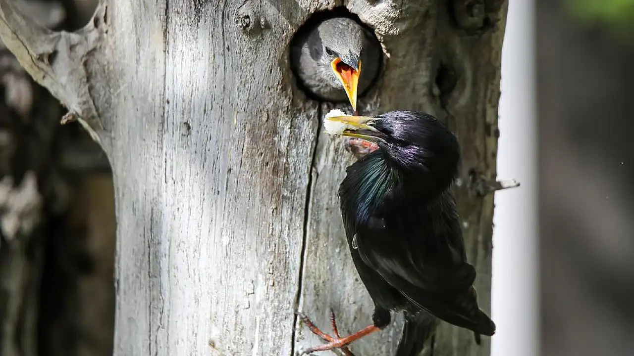 Sığırcık kuşunun yavrularını besleme anı görüntülendi