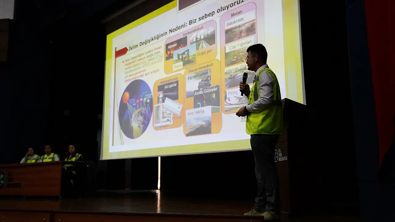 Tire Belediyesi Kültür Salonu’nda düzenlenen “İklim Değişikliği, Sıfır Atık ve Atık Yönetimi Uygulamaları” başlıklı eğitimde, Sıfır Atık Yönetim Sisteminin sahada nasıl daha etkin uygulanabileceğine dair bilgiler paylaşıldı. Muhtarların kendi mahallelerinde atık ayrıştırma, geri dönüşüm ve çevre duyarlılığı konusunda daha aktif rol üstlenmesi hedeflendi.