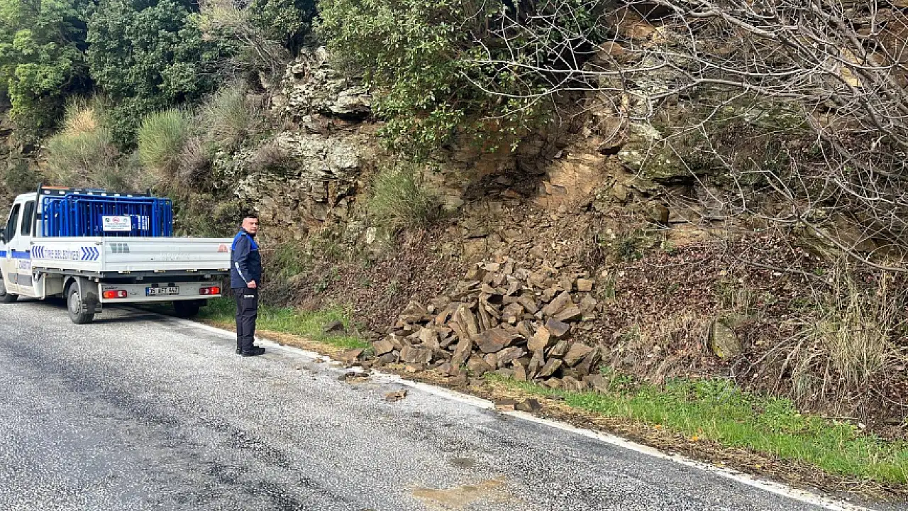 Tire ilçesinde sağanak yağış sonrası bazı noktalarda toprak kayması ve göçük tehlikesi oluştu. Belediye ekipleri, yolda güvenliği sağlamak için önlemler aldı.