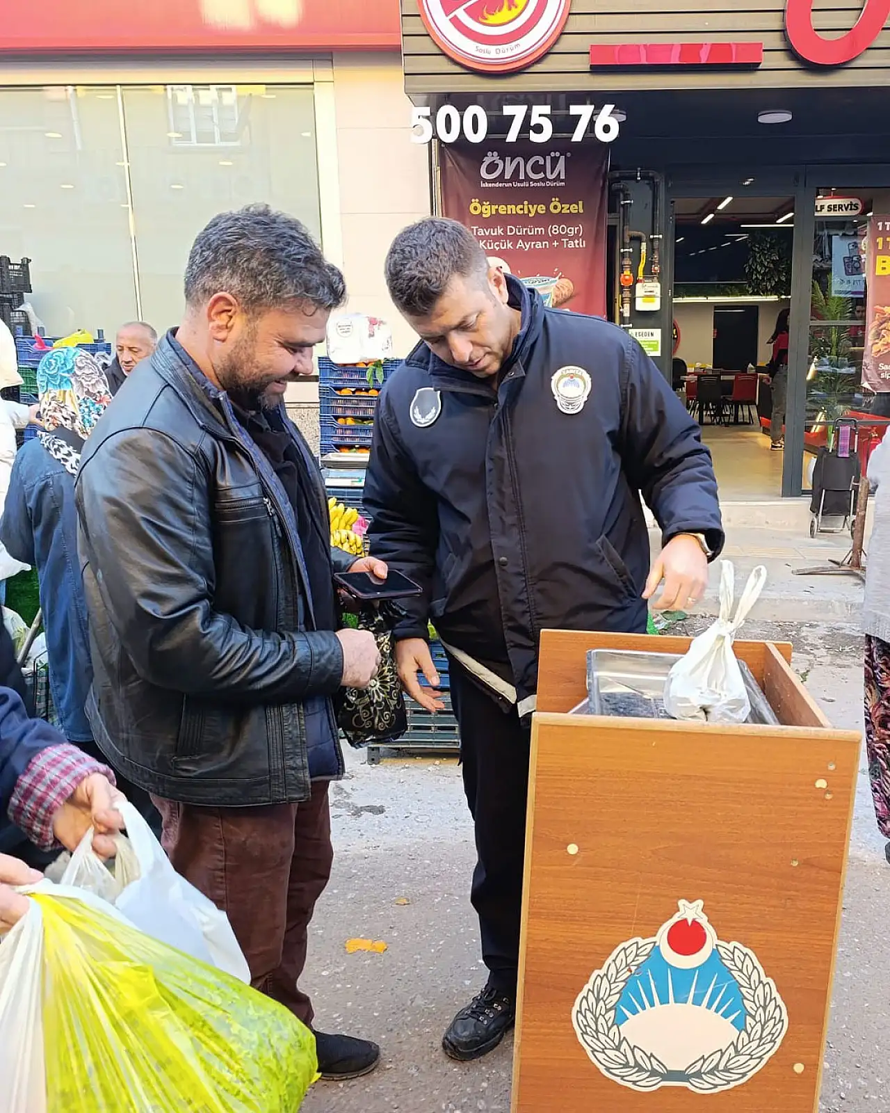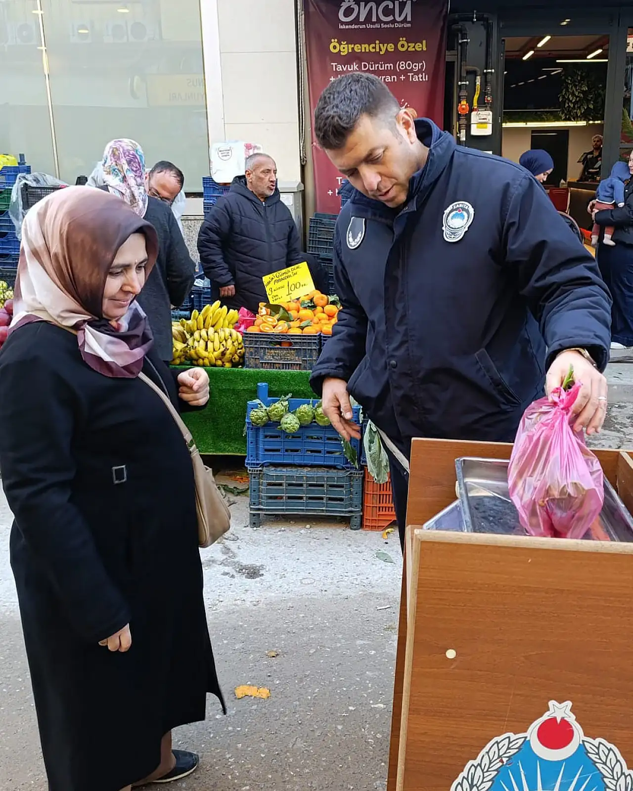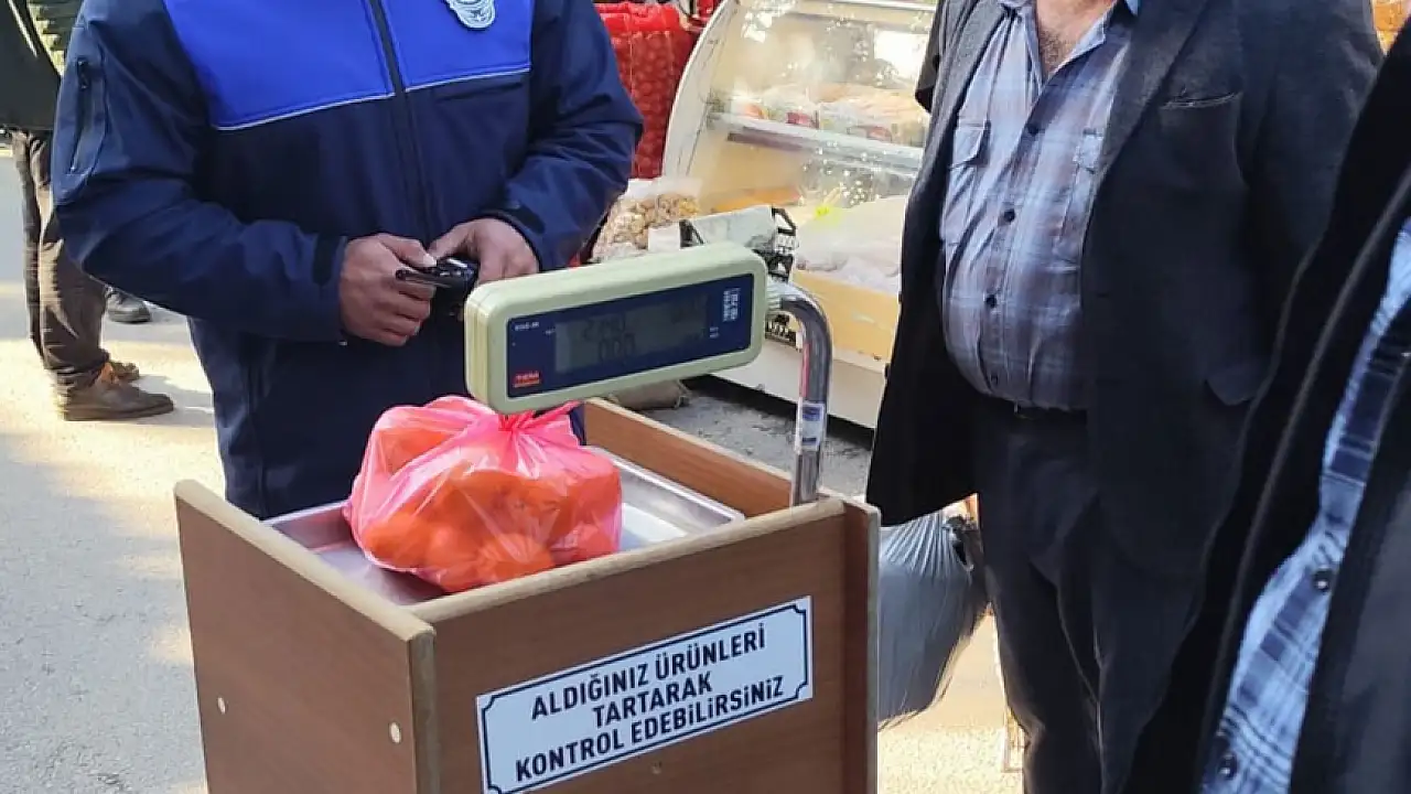 Zabıta ekipleri, denetimlerin yanı sıra pazarın çeşitli noktalarına kurdukları tartı kontrol istasyonlarıyla vatandaşlara satın