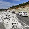 Tırın dorsesindeki gaz betonlar yola savruldu!