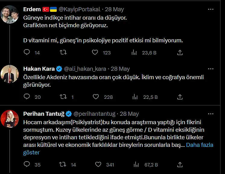 Merkez Bankası Eski Başekonomisti Hakan Kara sosyal medya hesabından Türkiye’nin Avrupa ülkeleri arasında yaşam memnuniyetsizliği en yüksek olmakla birlikte intihar oranlarında en düşük ülke olduğunu paylaştı.
