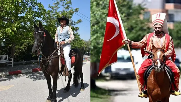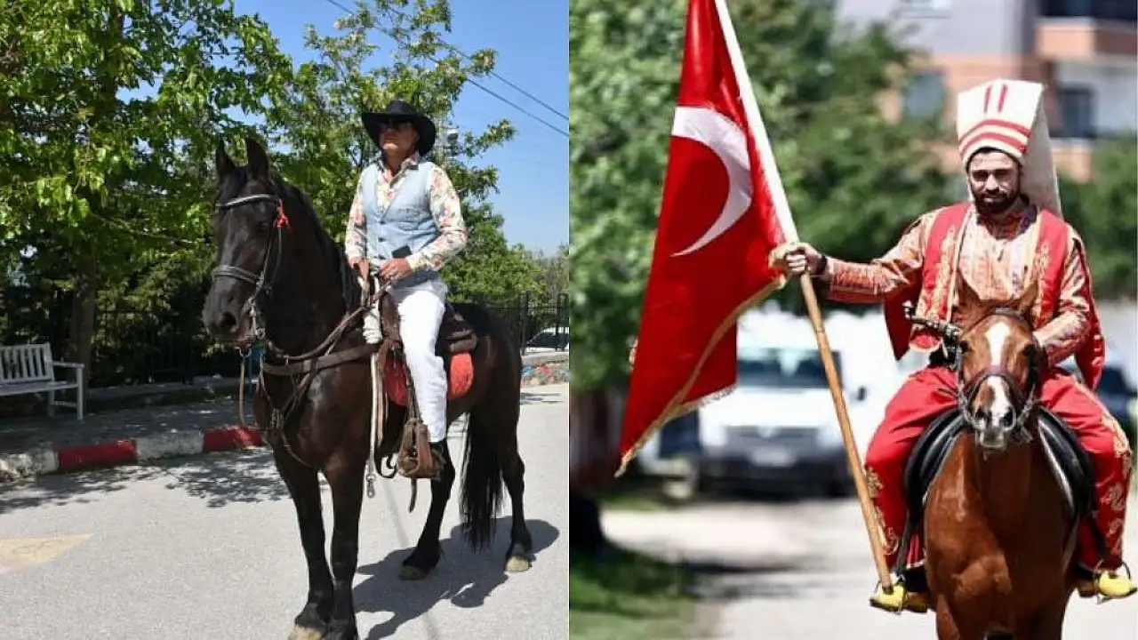 İZMİR’DE KOVBOY KIYAFETİ VE ATIYLA GELDİ
